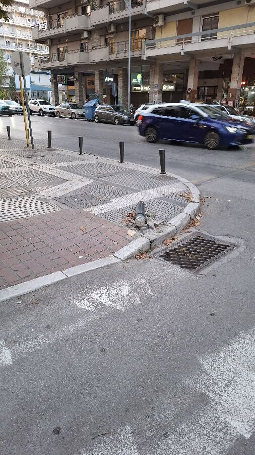 Σπασμένο κολονάκι σε διάβαση.