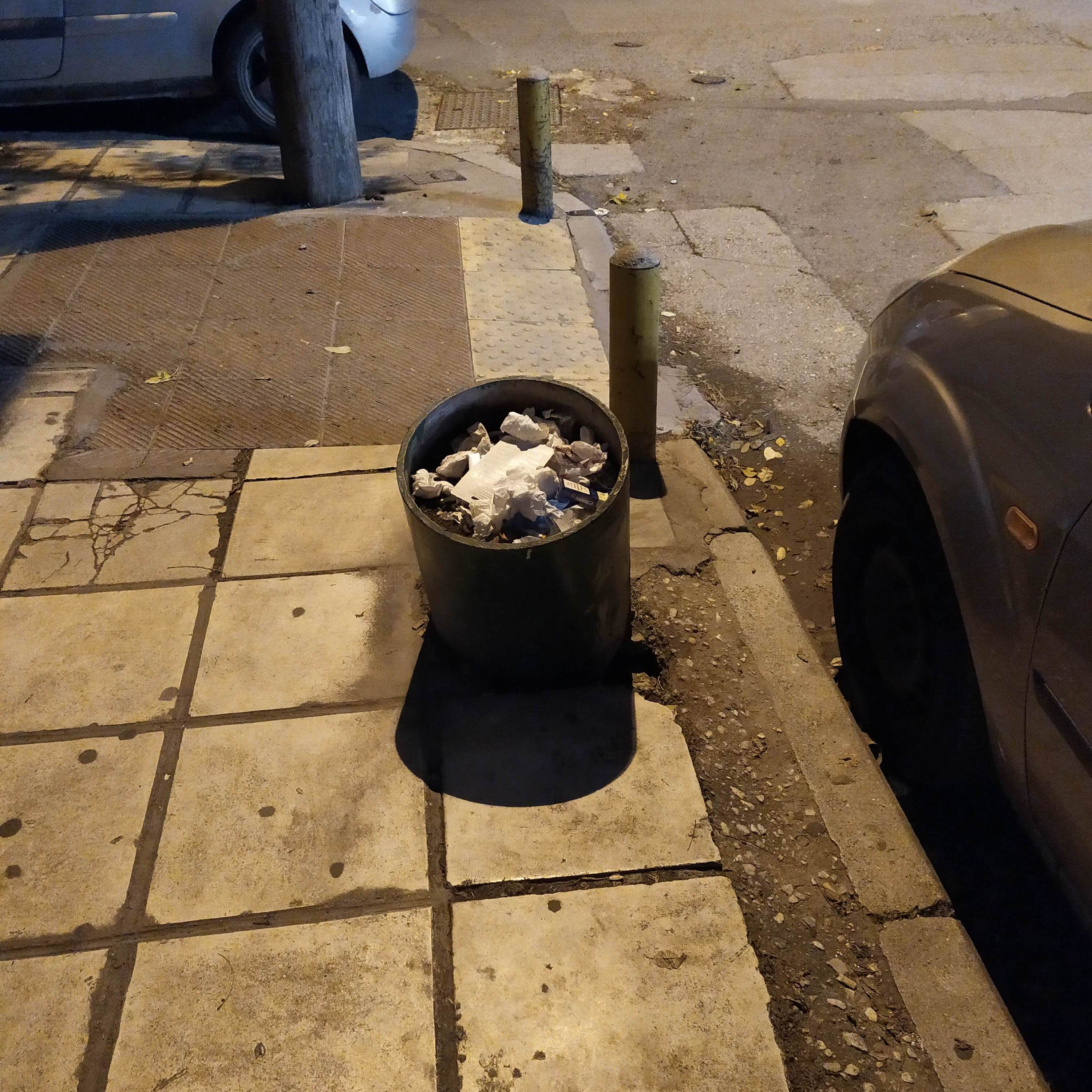 Έχει πολλά χρόνια που βρίσκεται ένα αντικείμενο σαν στρογγυλή γλάστρα, μέσα στο πεζοδρόμιο και εμποδίζει και βρωμιζει μόνο.