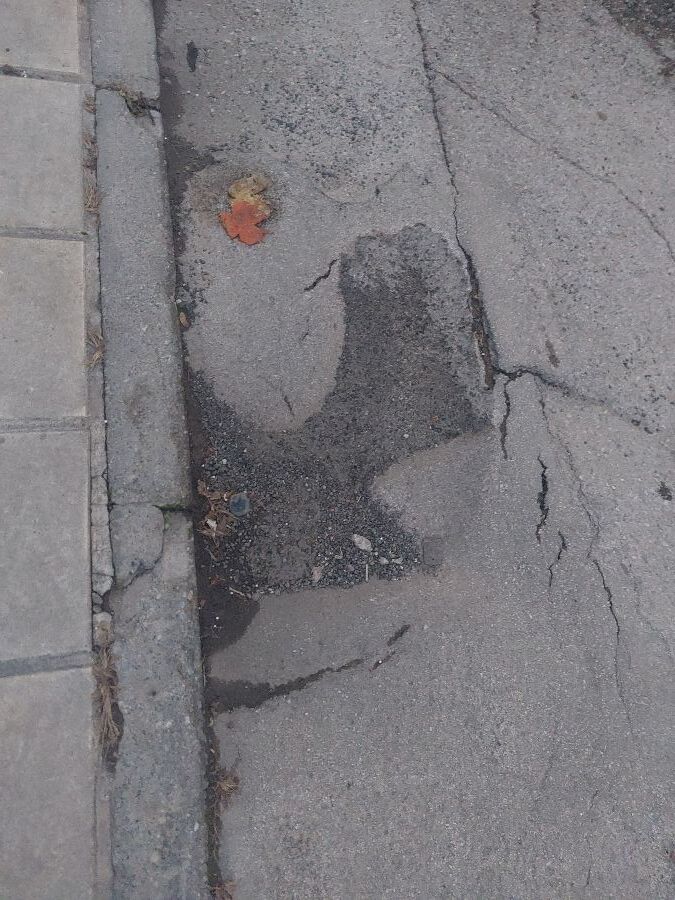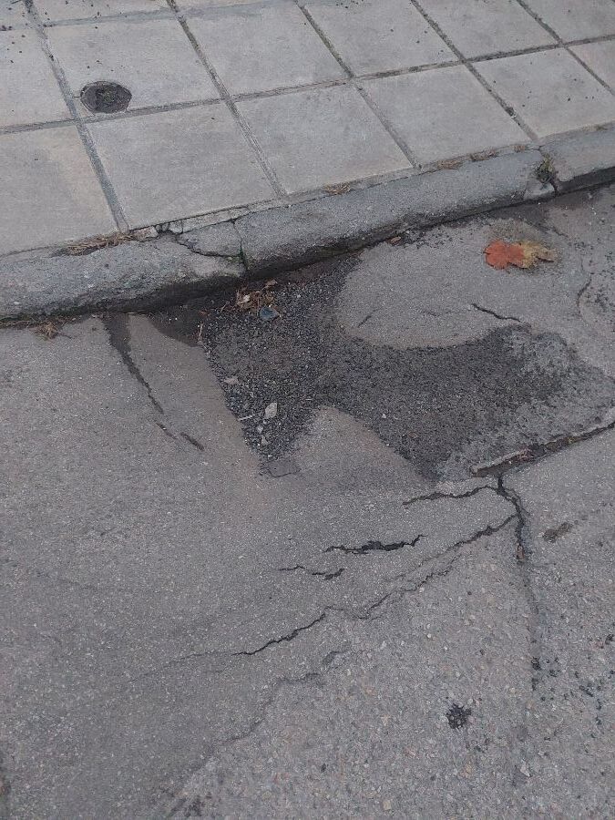 Λακκούβα στο οδόστρωμα που συνεχώς βαθαίνει με αποτέλεσμα τον κίνδυνο ατυχήματος από πεζούς και οχήματα.