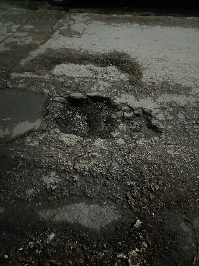 Υπάρχει τρύπα στην άσφαλτο λόγω φθοράς, εγκυμονεί κίνδυνος για τα διερχόμενα οχήματα. Έχετε ενημερωθεί εδώ και ένα μήνα.