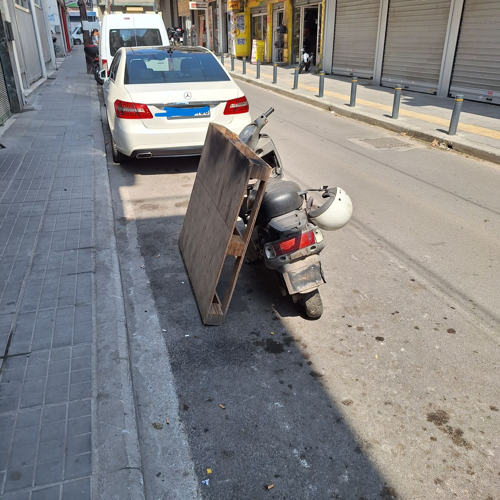 Τουλάχιστον 5 χρόνια είναι παρατημένο εκεί. Το έχουν οικειοποιηθεί τα μαγαζιά (το κάνουν πάσες μεταξύ τους) και το τοποθετούν μπροστά σε αυτά για να παρκάρουν τα δικά τους οχήματα. Τις περισσότερες φορές είναι μπροστά στο μαγαζί (Mkmotoparts) επί της οδού Οδυσσέως 29. Πράξε τα δέοντα !!!