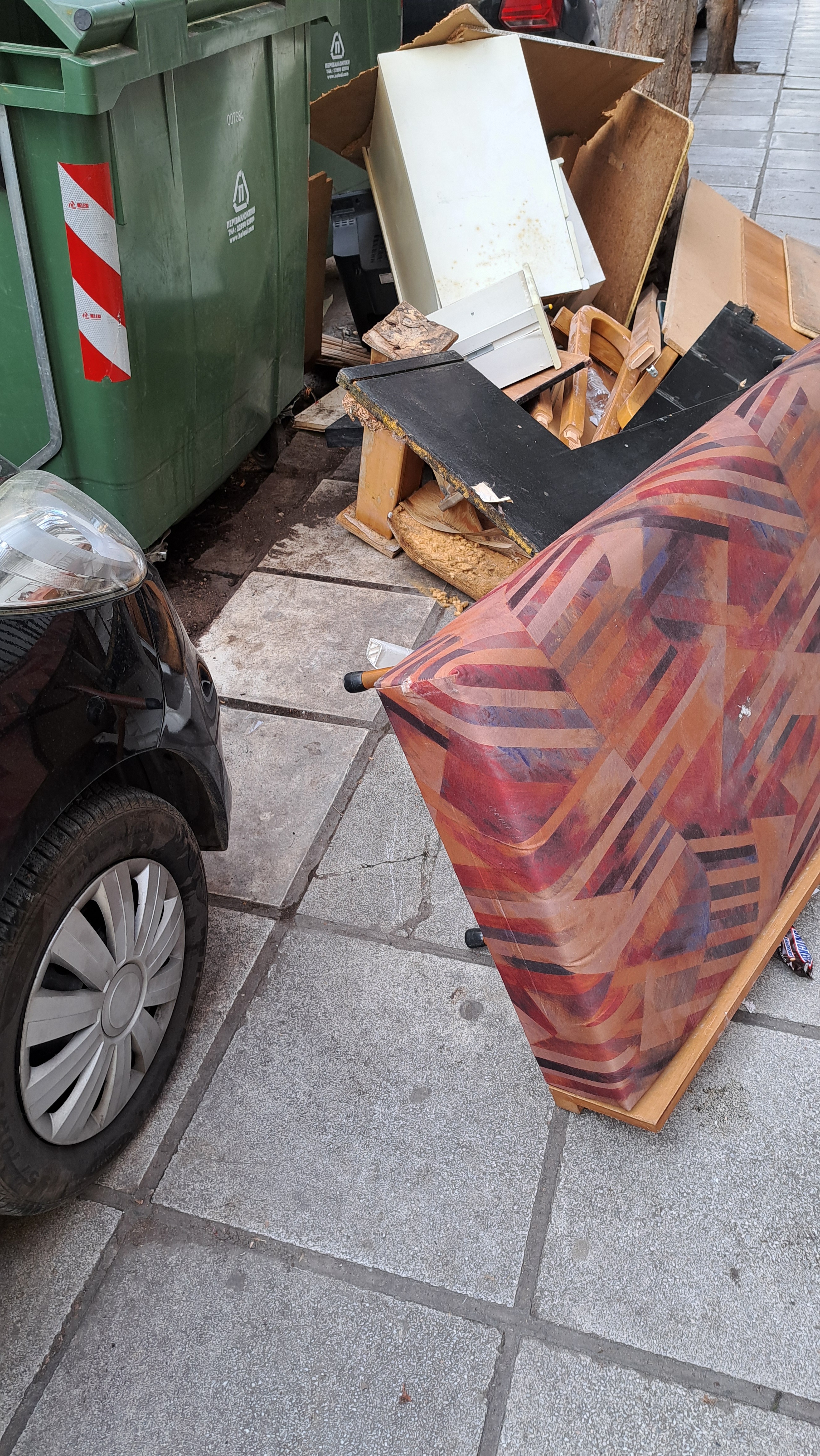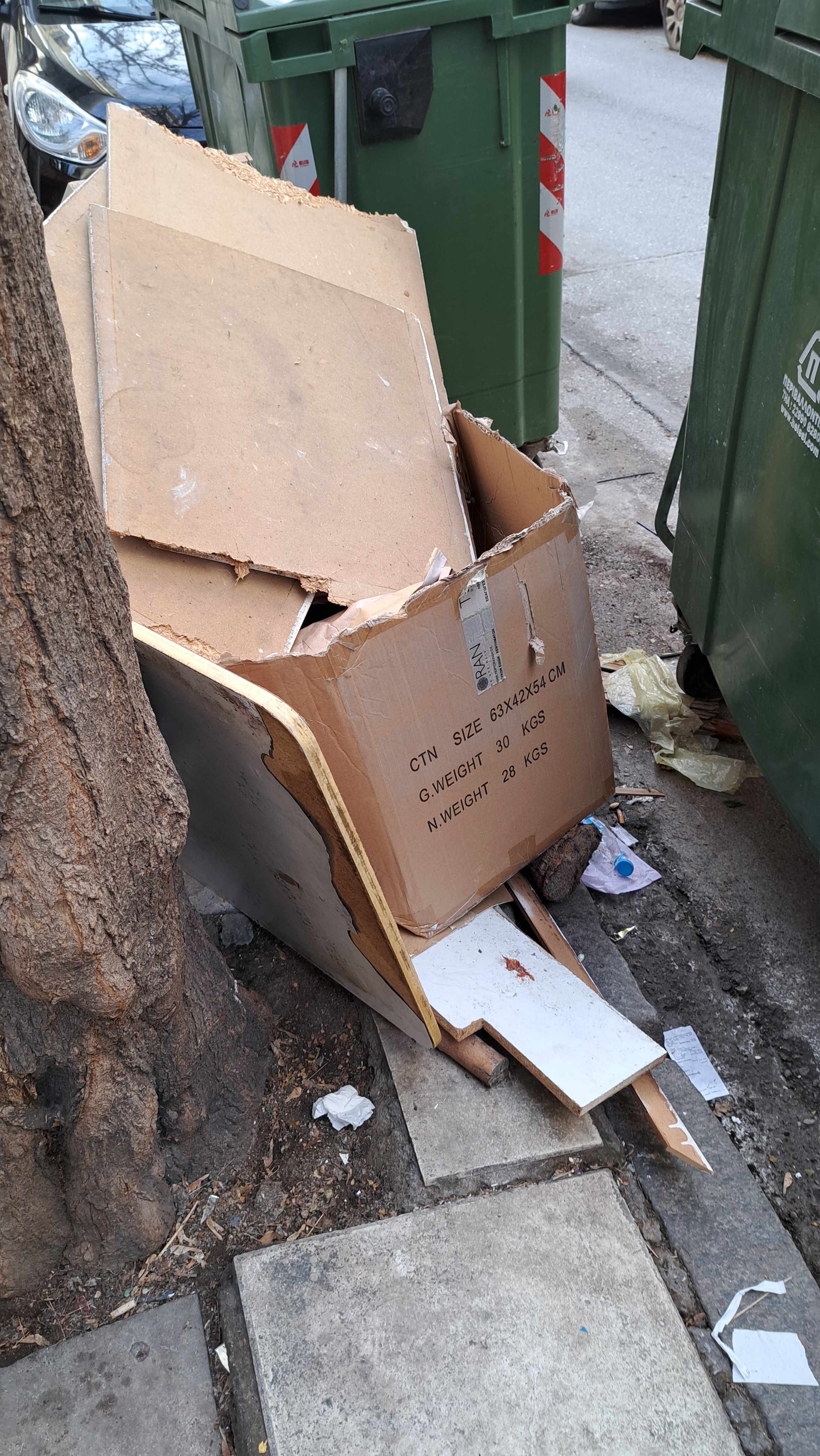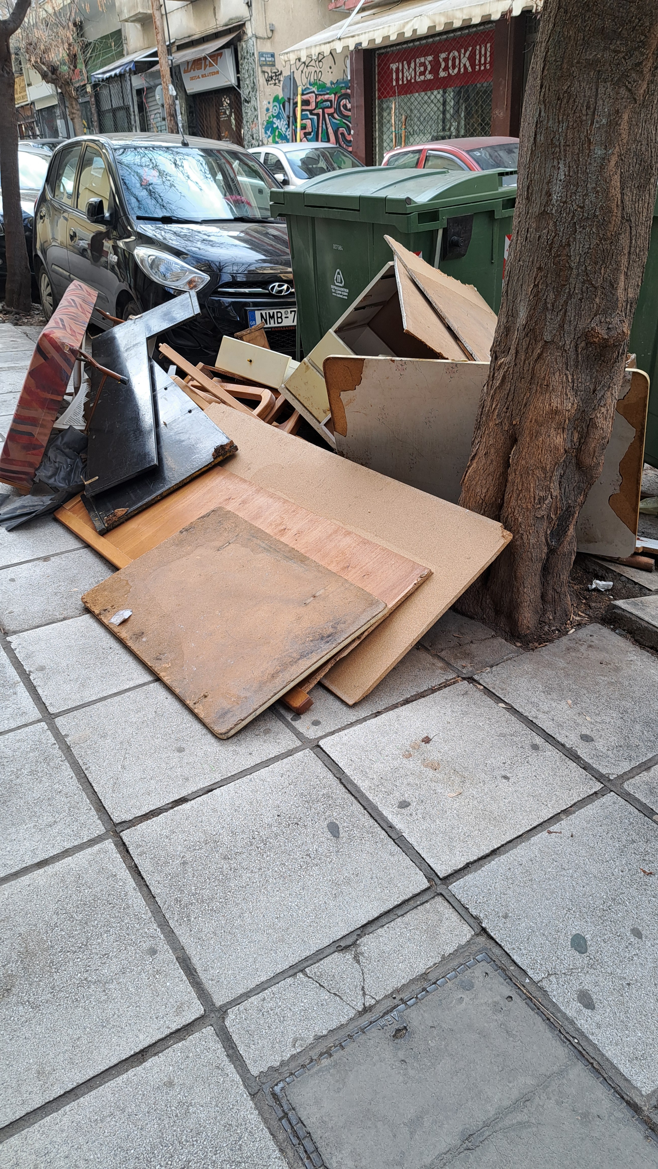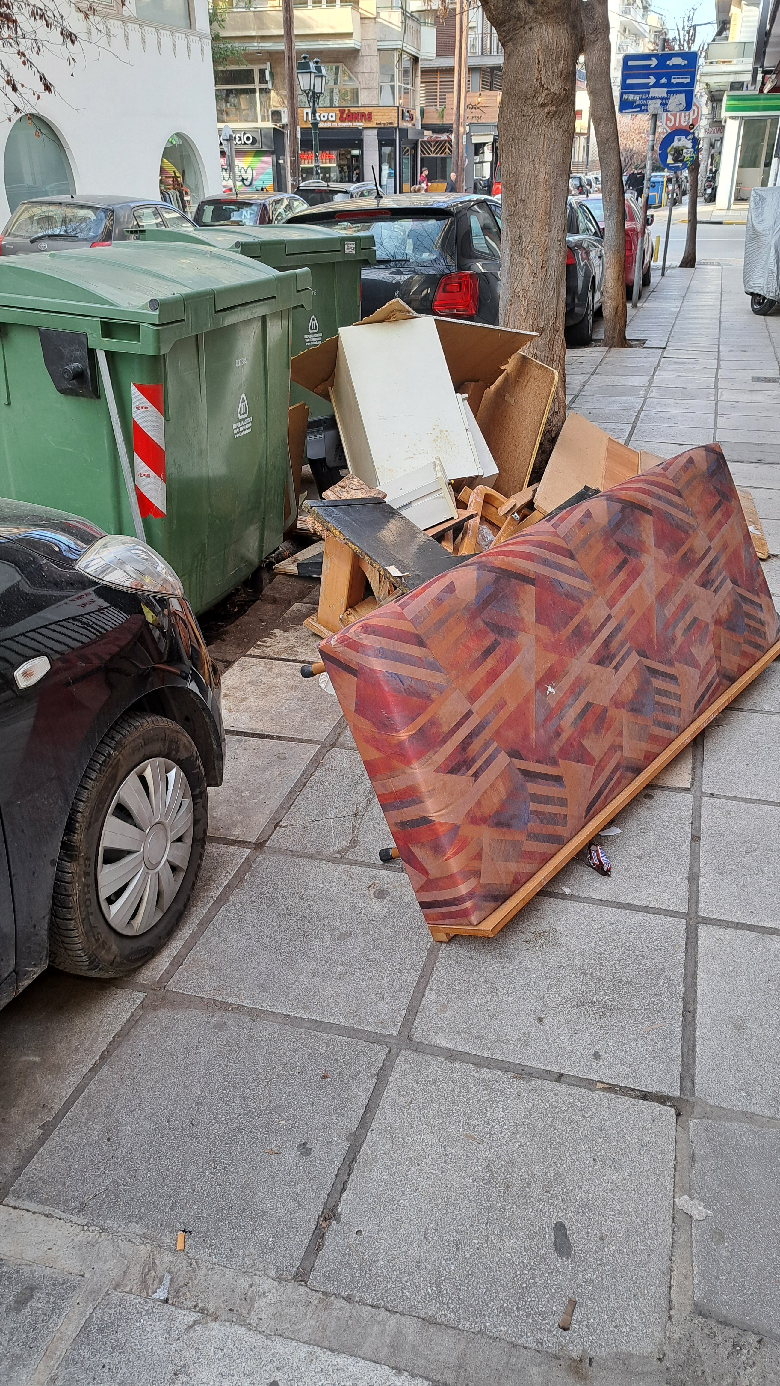 Ογκώδη αντικείμενα, έπιπλα, τηλεόραση, κ.λπ. Παραπλεύρως των κάδων απορριμμάτων στην οδό Αετοραχης 31