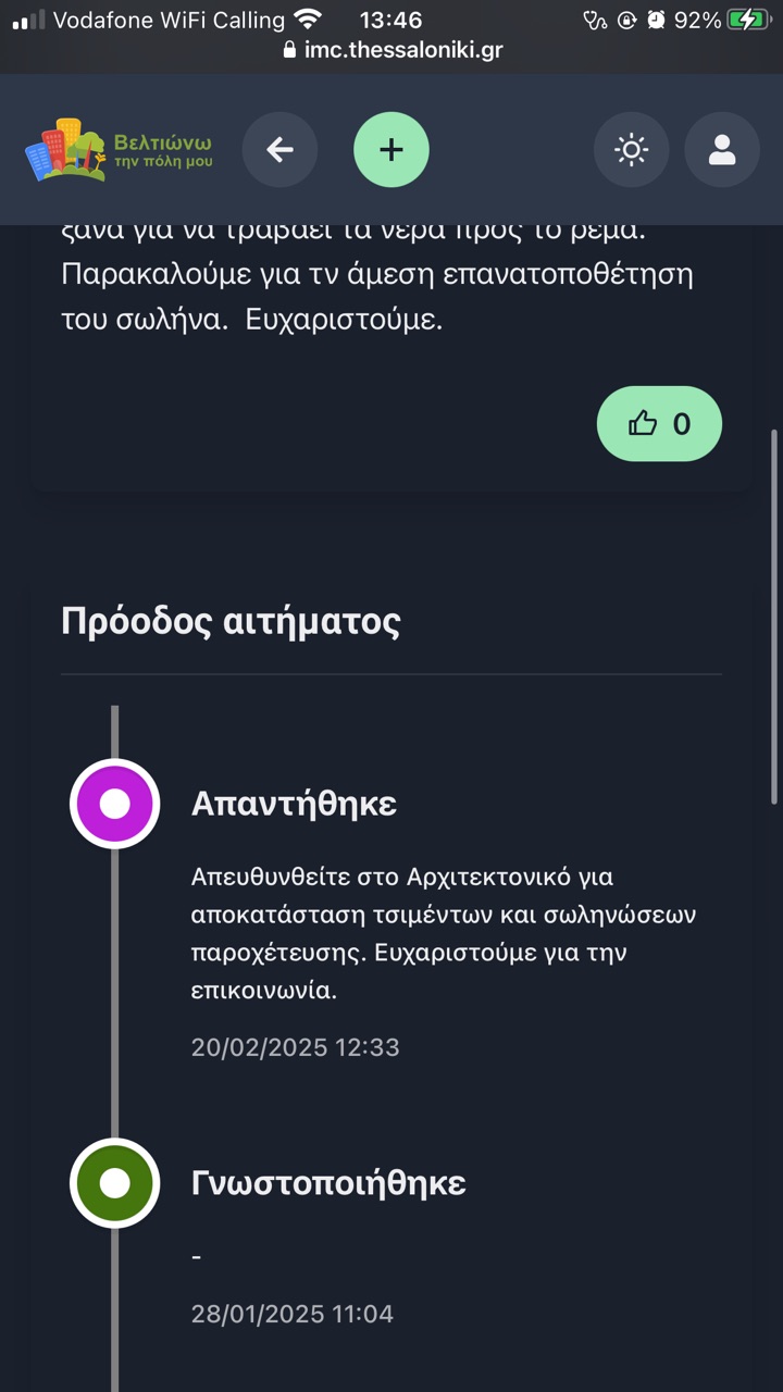 Η κατηγορία του αιτήματος άλλαξε σε Υπό κατασκευή έργα της Διεύθυνσης Κατασκευών και Συντηρήσεων
