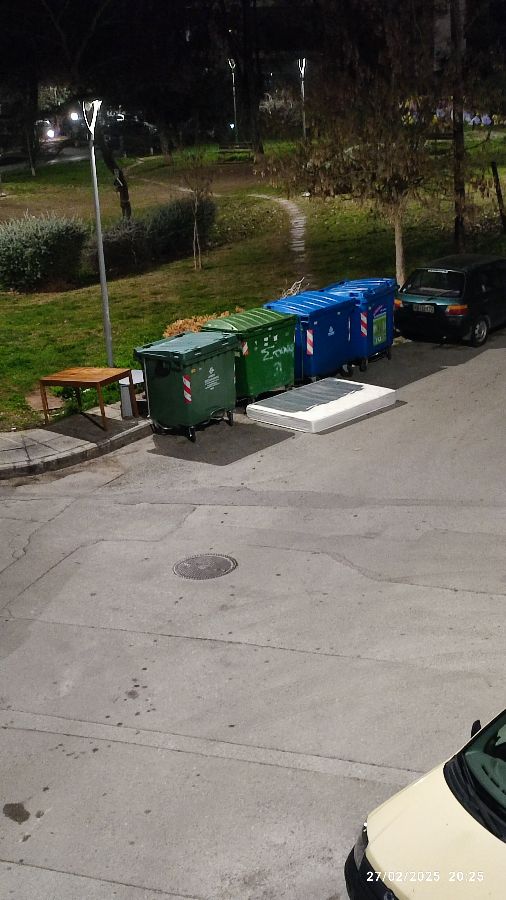 Πεταμένα εδώ και μια εβδομάδα, οι υπάλληλοι καθαριότητας που περνάνε κάθε πρωί στις εφτά για τους κάδους δεν τα βλέπουν;; Δεν ενημερώνουν;; Απαράδεκτοι!! Όποτε έχω ενημερώσει την εφαρμογή σε δύο μέρες έρχεται η υπηρεσία και μαζεύει τα ογκώδη και πολλά συγχαρητήρια αλλά οι υπάλληλοι του δήμου είναι για απόλυση άμεσα!!!