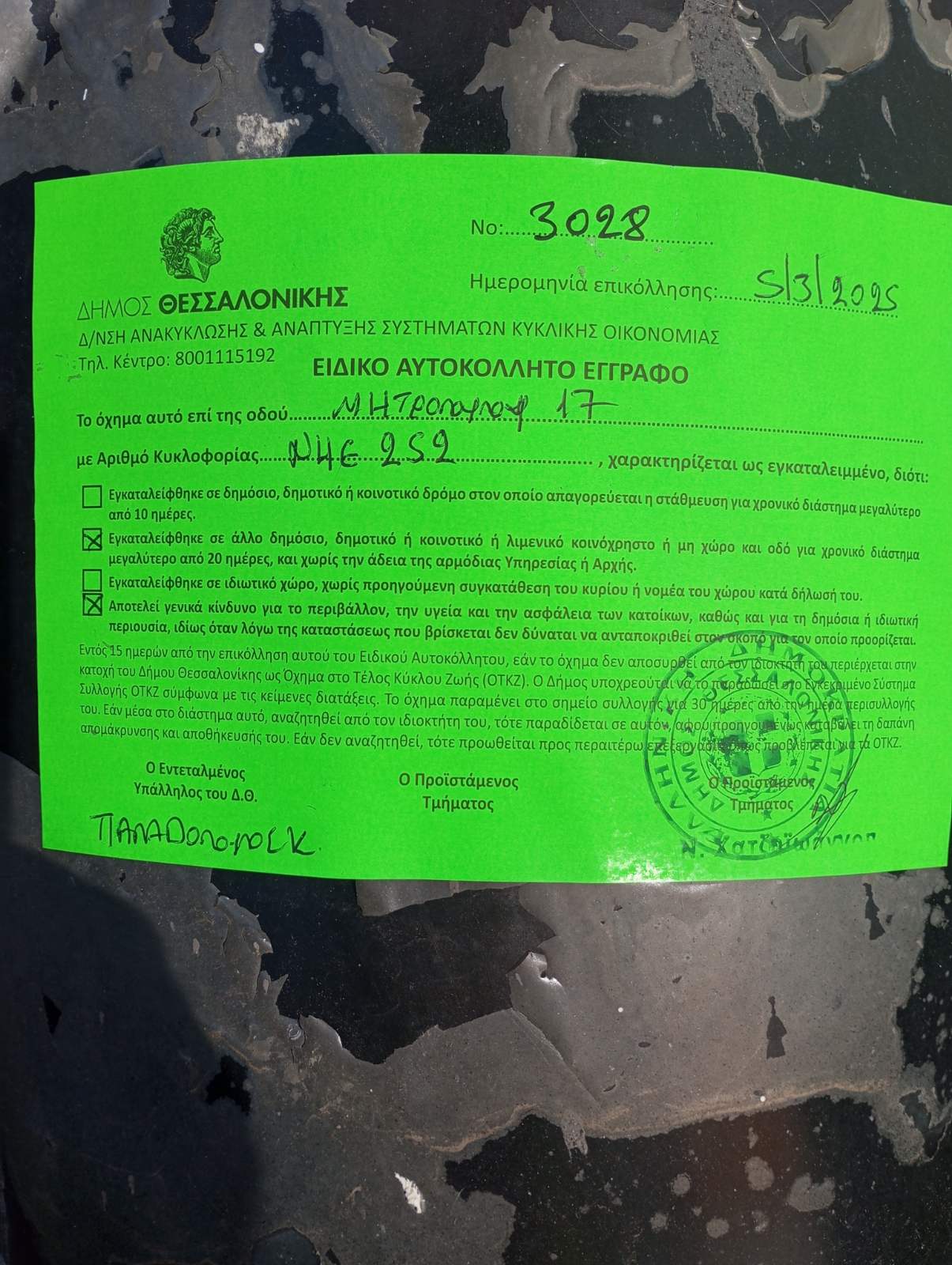 - Εμπλεκόμενα Tμήματα: Call-Center, Διεύθυνση Ανακύκλωσης και Διαχείρισης Αστικών Αποριμμάτων, Καθαριότητα - Τμήμα Ανακύκλωσης - Εγκαταλειμμένα Οχήματα