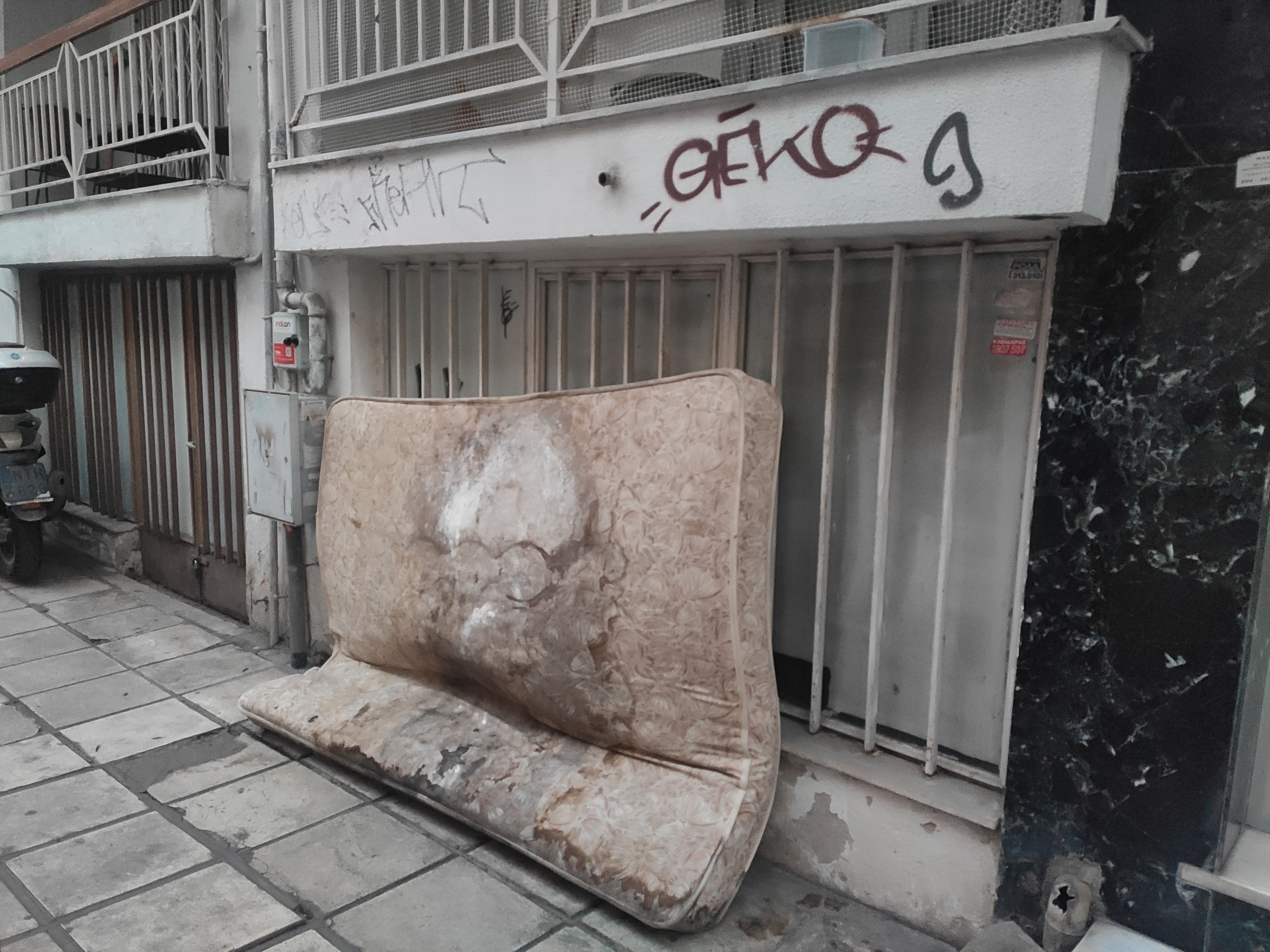 Άγνωστος έχει αφήσει έξω από την πολυκατοικία που διαμένω ένα παλιό στρώμα το οποίο αποτελεί εστία μόλυνσης. Κατοικίδια και αδέσποτα βρέχουν το στρώμα, μαζεύονται μύγες και η κακοσμία είναι αισθητή. Δεν δύναμαι να ανοίξω το παράθυρό μου γιατί μυρίζει πολύ άσχημα. Σας παρακαλώ κάνετε τις απαραίτητες ενέργειες για να απομακρυνθεί αυτό το αντικείμενο από το πεζοδρόμιο. Σας ευχαριστώ θερμά εκ των προτέρων.