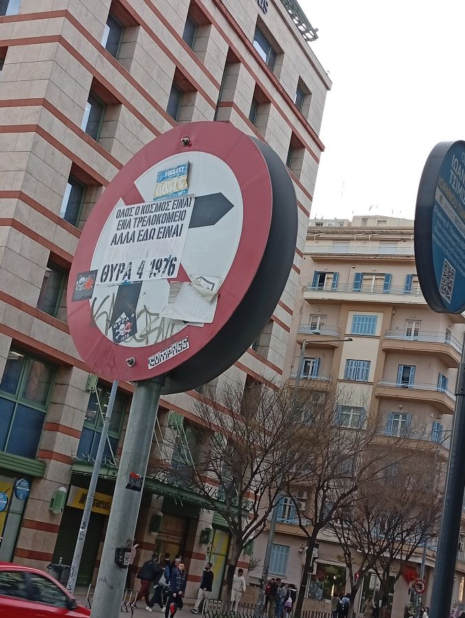 Συνεχίζεται η δολοφονική ηλιθιότητα των χούλιγκαν να "κατακτούνε" πινακίδες του ΚΟΚ. Κάποιος ξένος στην πόλη αν στρίψει δεξιά από Τσιμισκή στην Εθ. Αμύνης, θα έχουμε πάλι νεκρούς όπως πριν 4-5 χρόνια στο περιστατικό με τουρίστα στην Β Όλγας. Ο Δήμος πρέπει επιτέλους να αρχίσει να τις καθαρίζει ΣΥΣΤΗΜΑΤΙΚΑ και να επιβάλει κυρώσεις στους επικίνδυνους βάνδαλους.