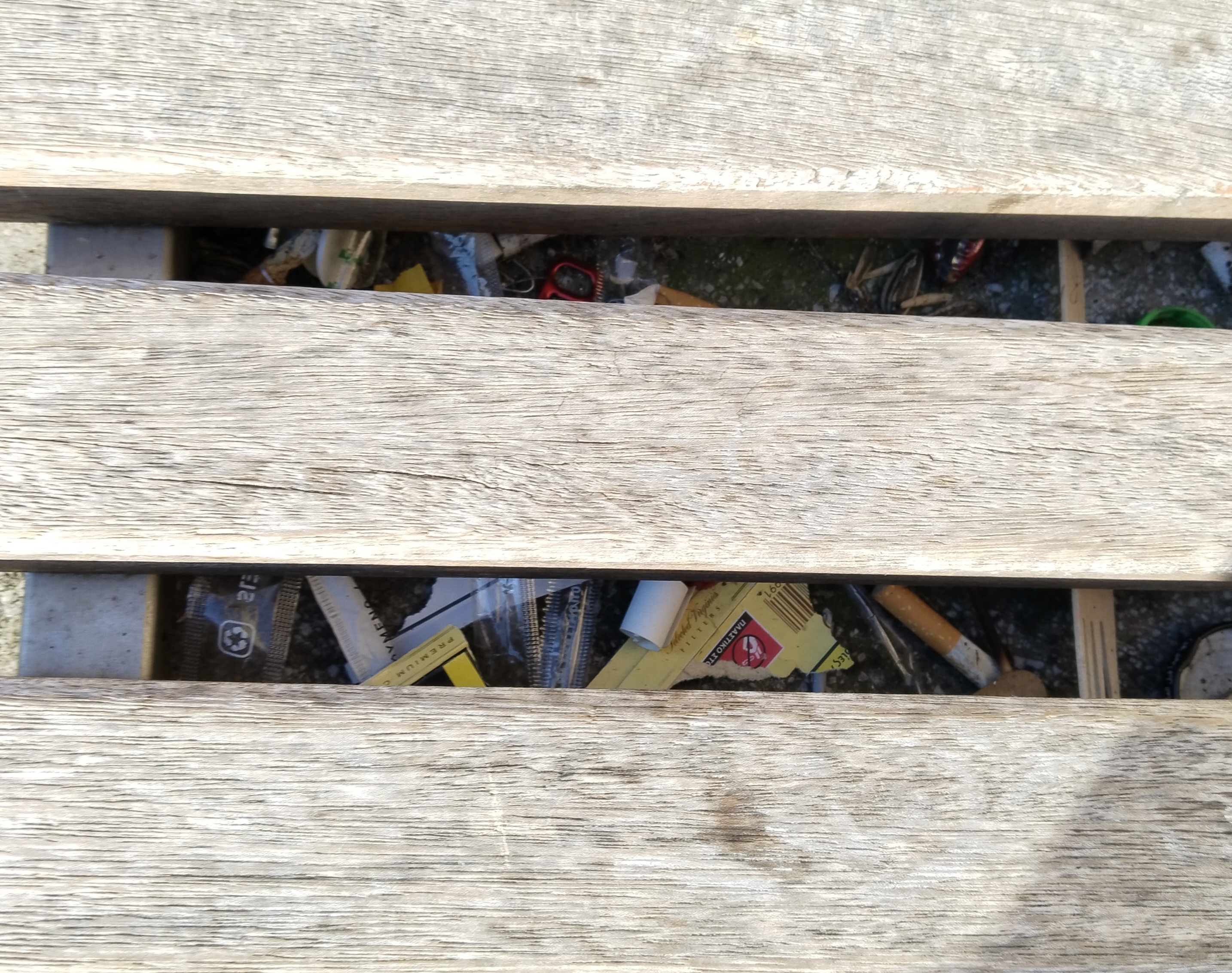 Στα τειχη έναντι του Πυροσβεστικού Σώματος στην Ολυμπιάδος (ο πεζόδρομος Χατζηανδρέου) οι χώροι πρασίνου νοτίως.Το πέτρινο παγκάκι εκεί (και τα 3 πιο ψηλα) δεν καθαρίζονται ποτε από τα σκουπίδια μέσα στην ξύλινη σχάρα τους._ 20/02 ώρα 8:30