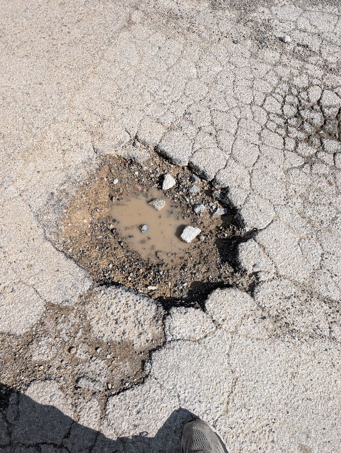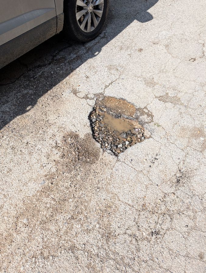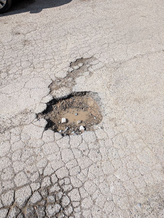 Υπάρχουν δύο μεγάλες και επικίνδυνες λακούβες μέσα στη μέση του δρόμου