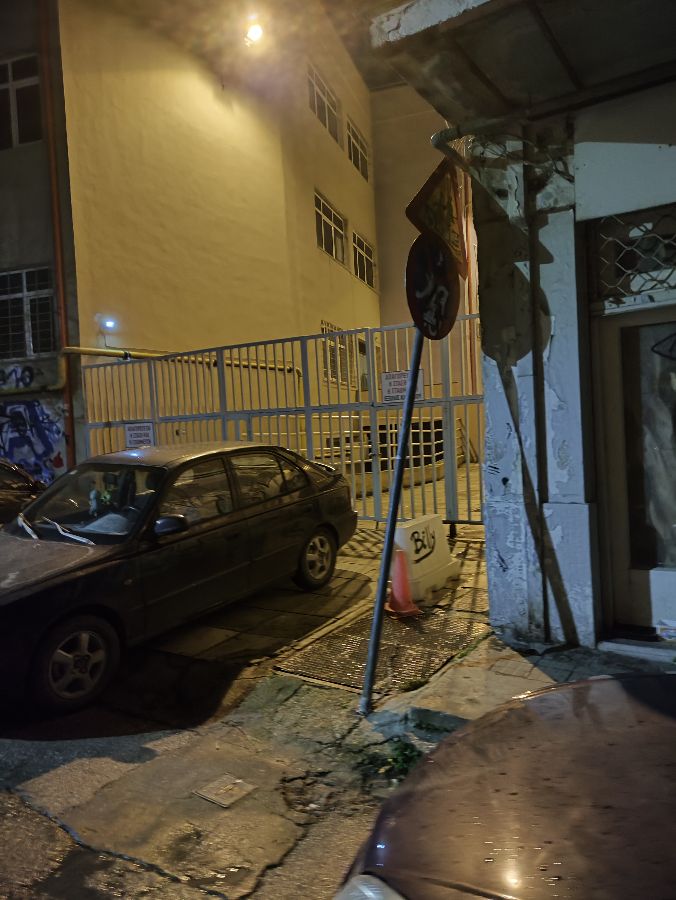 Στύλος πινακίδας γέρνει αρκετά και είναι έτοιμη να πέσει