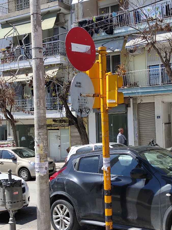 Πριν κάποιο καιρό αλλάχτηκε η πινακίδα με νεότερη αλλά όπως φαίνεται η τοποθέτηση δεν ήταν σωστή.