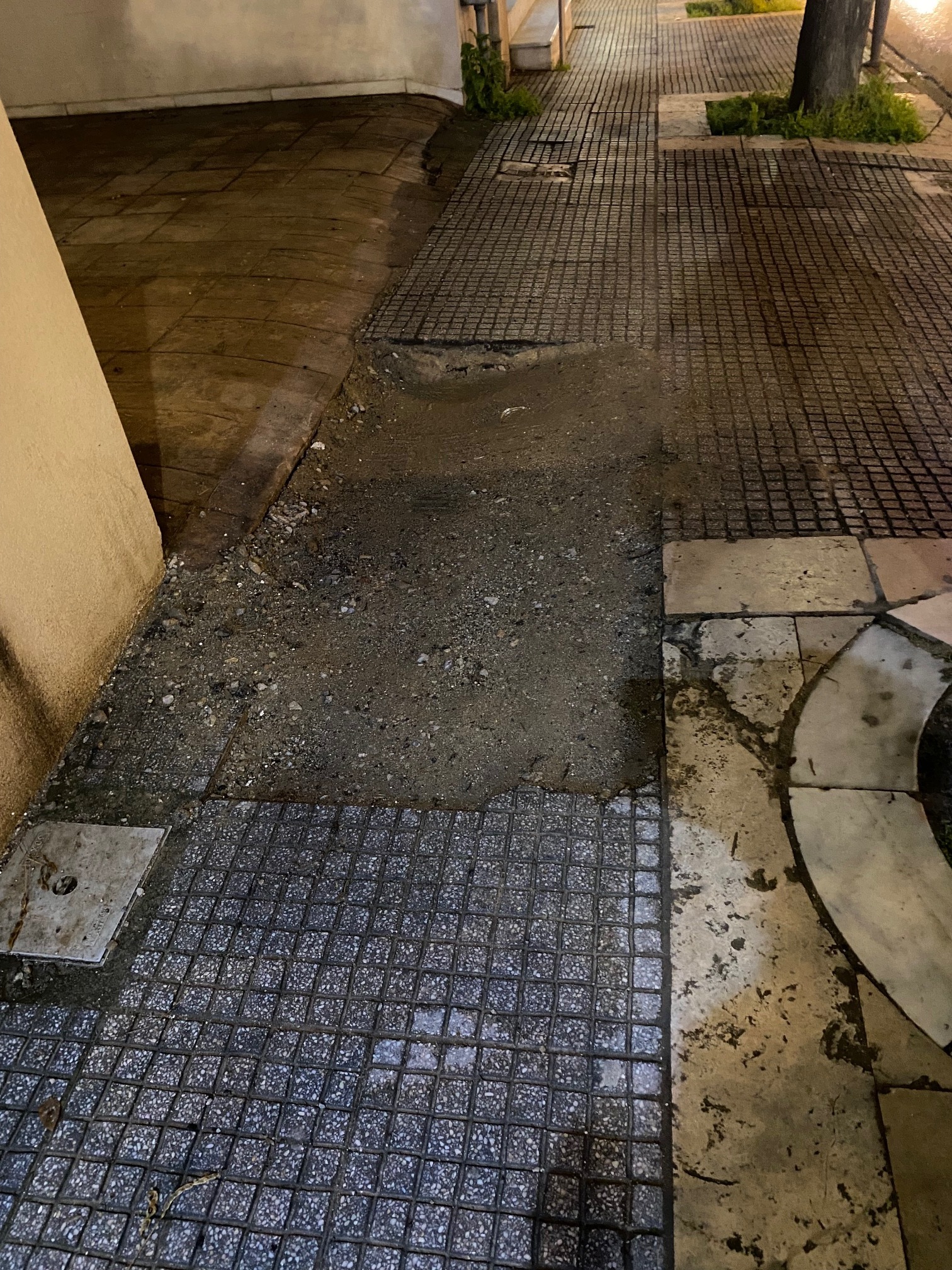 ΓΡΗΓΟΡΙΟΥ ΛΑΜΠΡΑΚΗ ΜΕ ΣΙΔΗΡΟΚΑΣΤΡΟΥ ΜΕΤΑ ΑΠΟ ΕΡΓΑΣΙΕΣ ΕΥΑΘ ΥΠΑΡΧΕΙ ΛΑΚΚΟΥΒΑ ΣΤΗ ΣΥΜΒΟΛΗ ΤΩΝ ΟΔΩΝ.3 ΜΕΤΡΑ ΠΙΟ ΚΑΤΩ ΠΡΟΣ ΤΗΝ ΚΑΤΣΙΜΙΔΗ ΑΝΤΙΣΤΟΙΧΟ ΑΝΟΙΓΜΑ ΣΤΟ ΠΕΖΟΔΡΟΜΙΟ