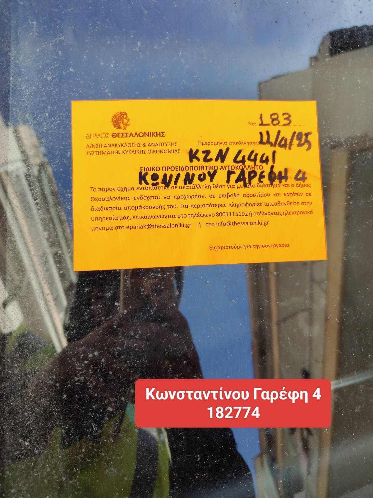 - Σας ενημερώνουμε ότι έγινε επιτόπιος έλεγχος του αιτήματός σας από υπάλληλο της υπηρεσίες μας Π. Στοιχεία για τις αρμοδιότητες μας, καθώς και για τη διαδικασία που ακολουθούμε για τη διεκπεραίωση αιτημάτων, όπως το δικό σας, θα βρείτε στην ιστοσελίδα του Δήμου Θεσσαλονίκης αναζητώντας στον φυλλομετρητή σας (google, bing κλπ) τη φράση: “ΔΗΜΟΣ ΘΕΣΣΑΛΟΝΙΚΗΣ ΕΓΚΑΤΑΛΕΙΜΜΕΝΑ ΟΧΗΜΑΤΑ” Κωτσιόνης Πασχάλης Υπεύθυνος-Συντονιστής Εποπτείας Ανακύκλωσης του Τμήματος & Σχεδιασμού Συστημάτων Κυκλικής οικονομίας