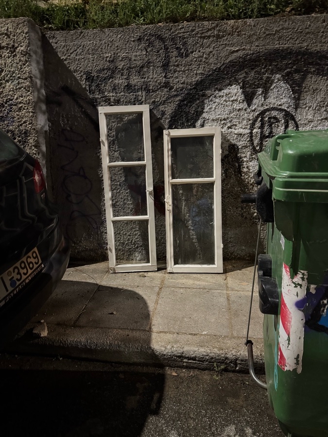 Παντζουρια με τζάμια στο πεζοδρόμιο