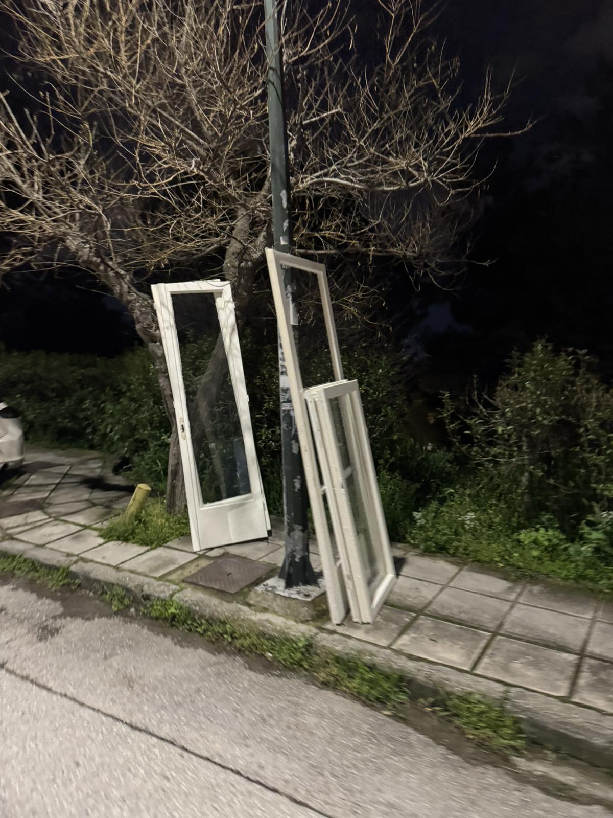 Μπαλκονόπορτες με τζάμια στο πεζοδρόμιο