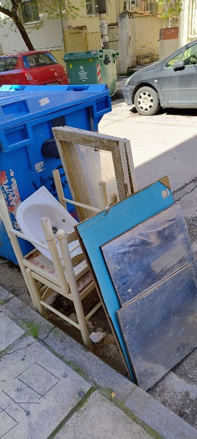 #183142. Ογκώδη αντικείμενα δίπλα σε κάδους.