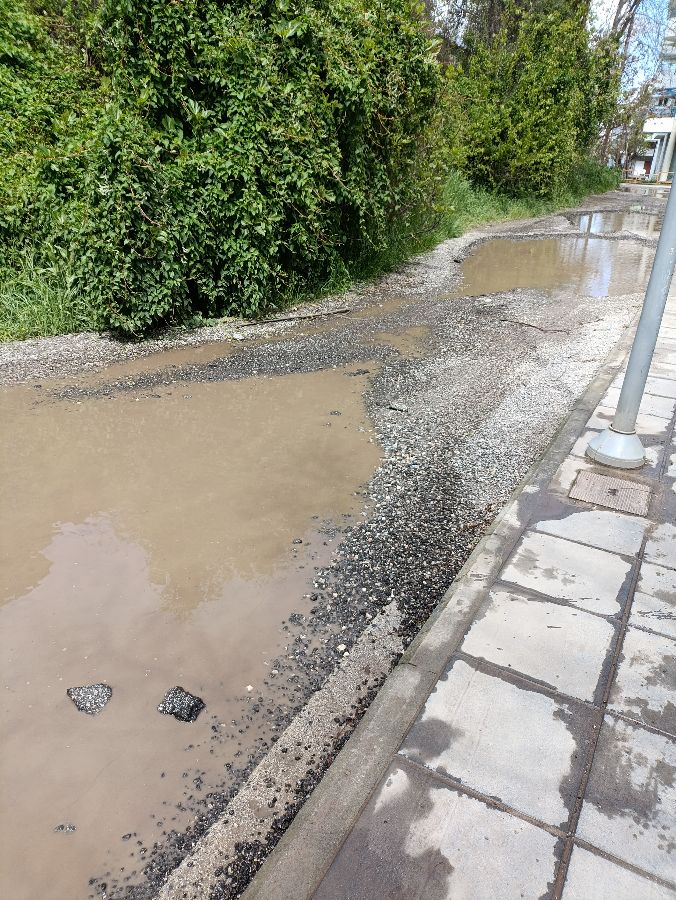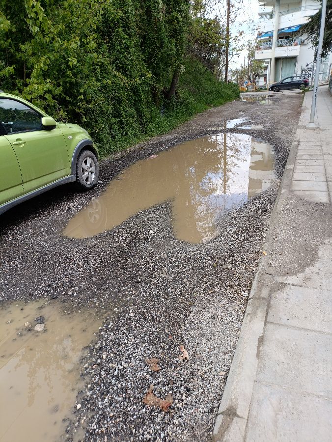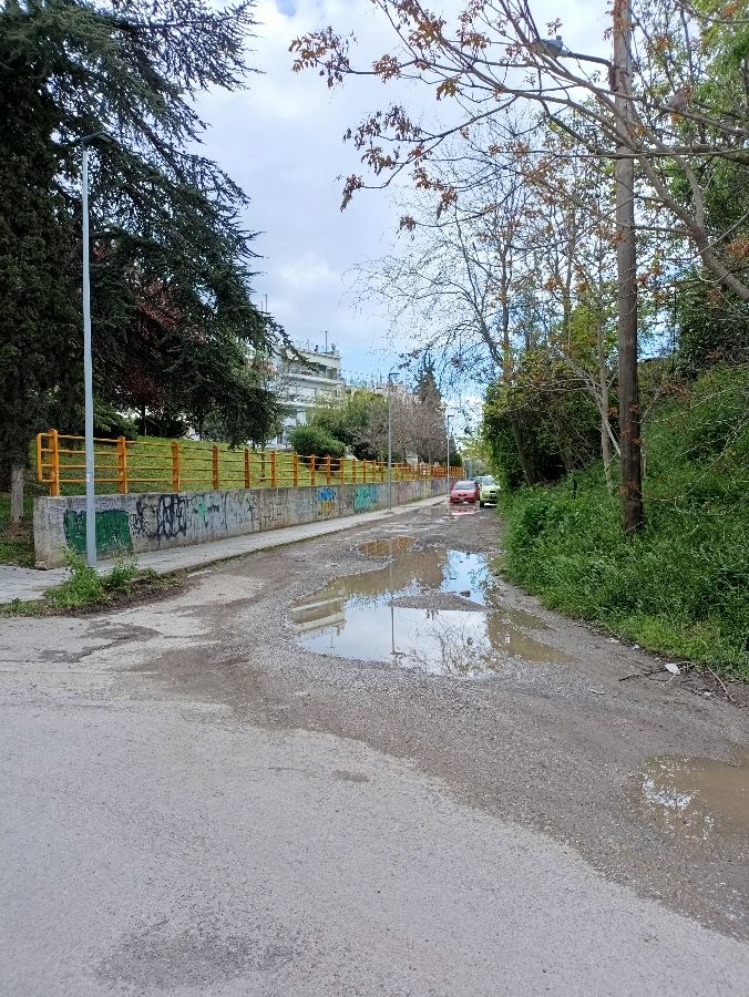 Η οδός Δεινοκράτους κάτω από το πάρκο έχει τελείως κατεστραμμένο οδόστρωμα σε ένα μήκος περίπου 80 μέτρων. Είναι ντροπή για την δεύτερη πόλη της Ελλάδας.