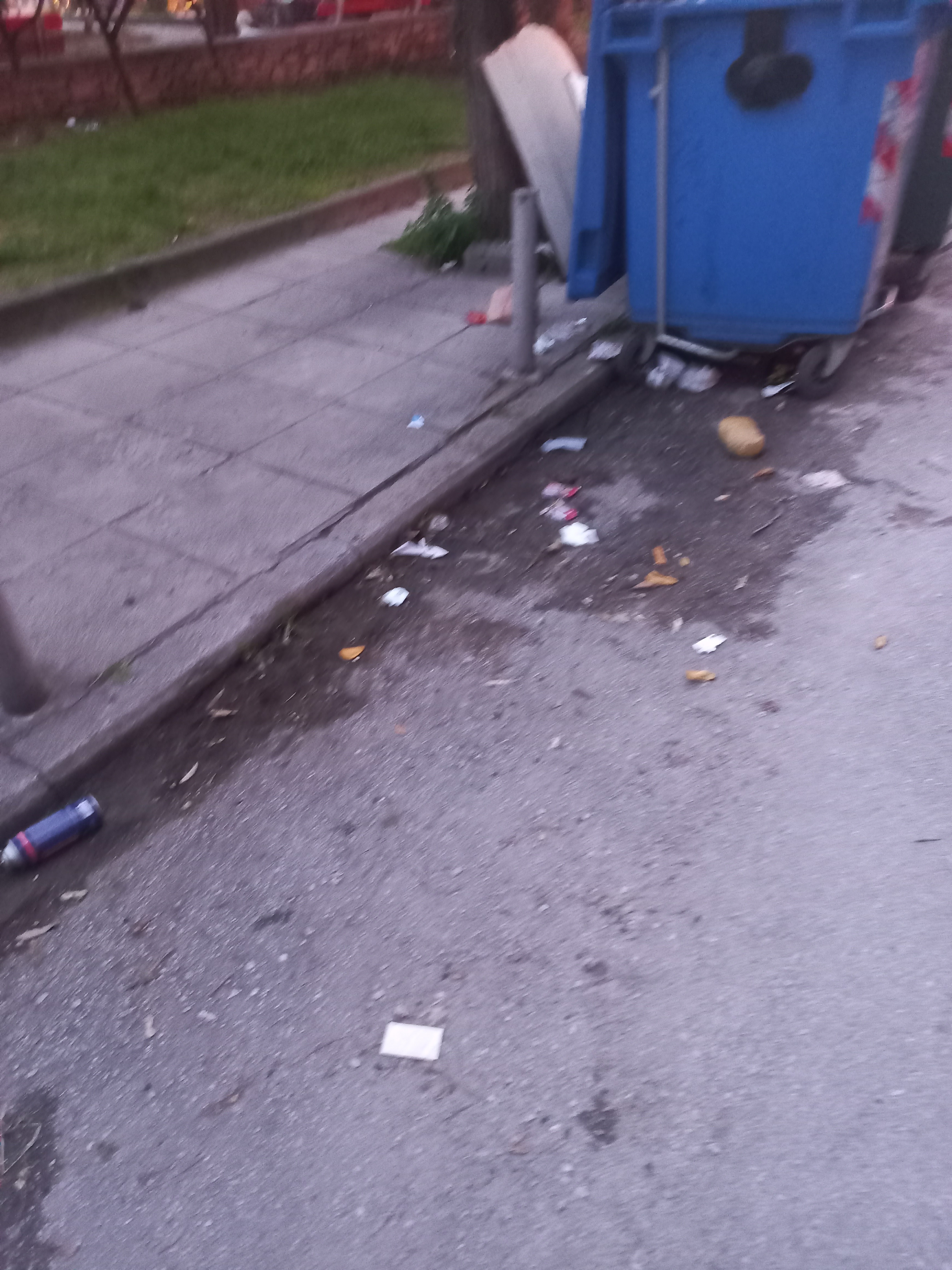 Σας στέλνω φωτογραφίες των κάδων, αλλά και του δρόμου καθώς και όλου του περιβάλλοντα χώρου, μετά την περισυλλογή σκουπιδιών από τον υπαλλήλους του Δήμου. Τα σκουπίδια ειναι σκορπισμένα παντού στον δρόμο και στο πάρκο που βρίσκεται εκεί και στον δρόμο έχουν χυθεί υγρά από τα σκουπίδια. Επειδή βρισκόμασταν μπροστά την ώρα που μάζευαν τα σκουπίδια οι υπάλληλοι του Δήμου και τους ενημερώσαμε ότι έχουν πέσει σκουπίδια στον δρόμο κατά την διάρκεια της αποκομιδής, εκείνοι μας απάντησαν ότι δεν είναι δική τους δουλειά και ανέβηκαν στο απορριμματοφόρο και έφυγαν.