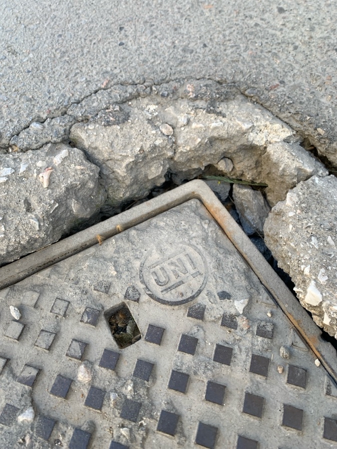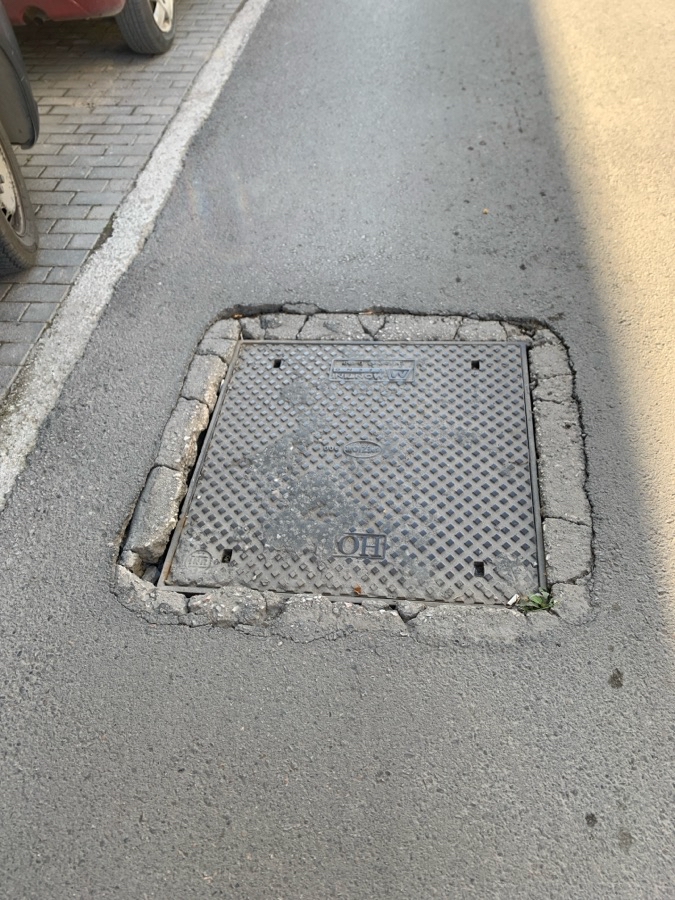 Το φρεάτιο έχει βυθιστεί με αποτέλεσμα να έχει γίνει επικίνδυνο για οχήματα και πεζούς.