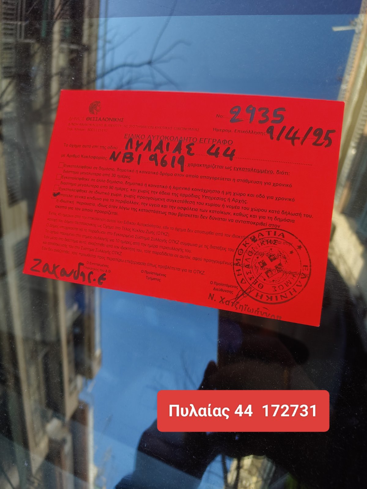 - Σας ενημερώνουμε ότι το όχημα που αναφέρετε κρίθηκε αρχικά ως εγκαταλειμμένο. DEBRA ...το άλλο δεν βρέθηκε στο σημείο Στοιχεία για τις αρμοδιότητες μας, καθώς και για τη διαδικασία που ακολουθούμε για τη διεκπεραίωση αιτημάτων, όπως το δικό σας, θα βρείτε στην ιστοσελίδα του Δήμου Θεσσαλονίκης αναζητώντας στον φυλλομετρητή σας (google, bing κλπ) τη φράση: “ΔΗΜΟΣ ΘΕΣΣΑΛΟΝΙΚΗΣ ΕΓΚΑΤΑΛΕΙΜΜΕΝΑ ΟΧΗΜΑΤΑ” Κωτσιόνης Πασχάλης Υπεύθυνος-Συντονιστής Εποπτείας Ανακύκλωσης του Τμήματος & Σχεδιασμού Συστημάτων Κυκλικής οικονομίας
