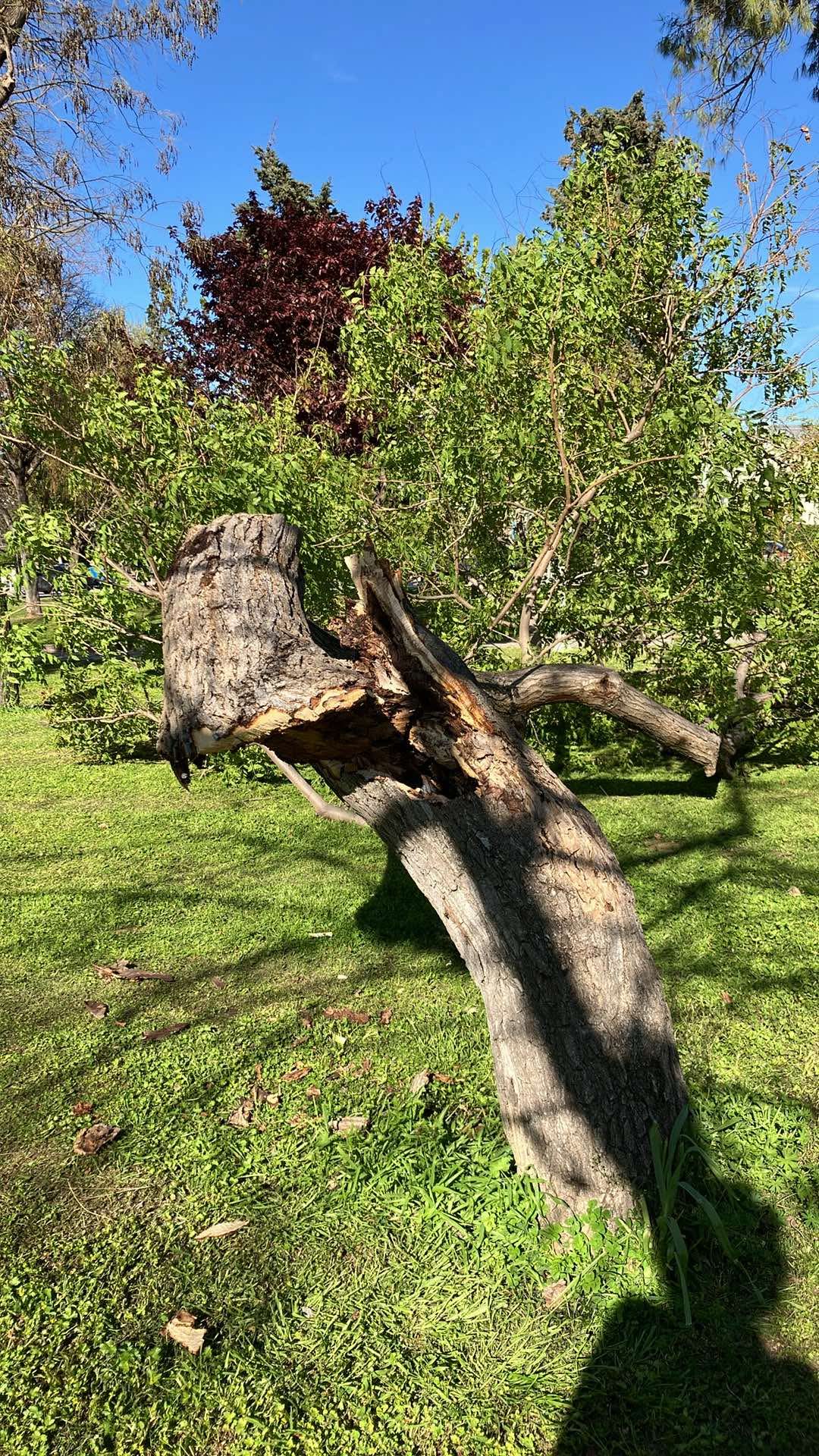 Σπασμένο δέντρο έξω απ’ την παιδική χαρά στο πάρκο του Ξαρχάκου.