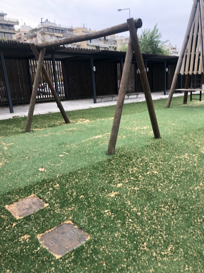 Δεν υπάρχουν κούνιες στο χώρο της παιδική χαρά και δεν υπάρχει φωτισμός στο χώρο της παιδικής χαρά το βράδυ.