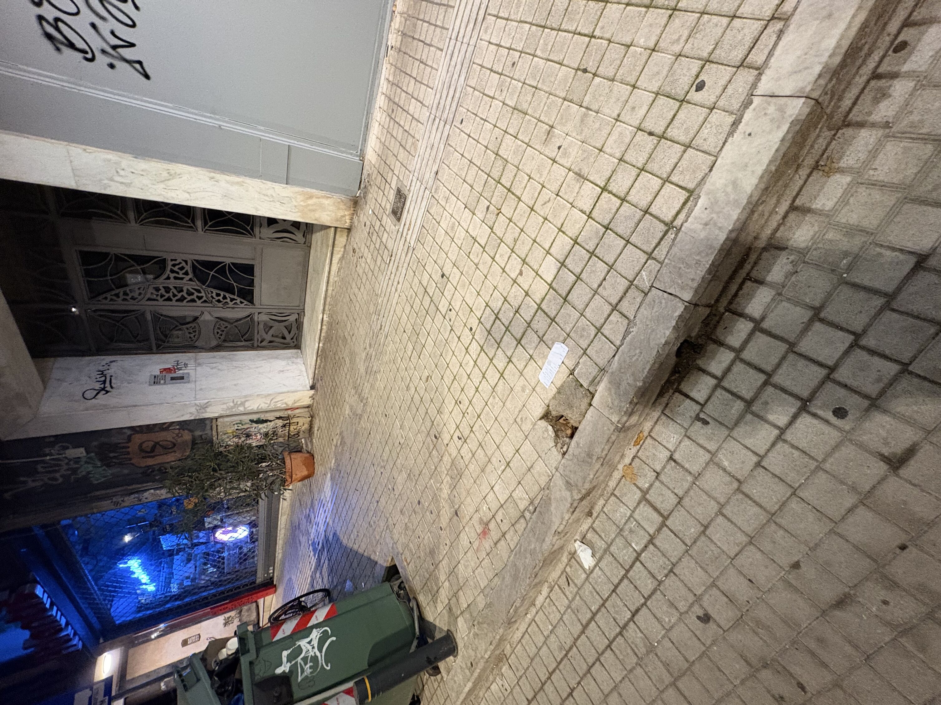 Επι της οδού λόρδου βυρωνος στο κέντρο μπροστά από τον αριθμό 4 και δίπλα από τα απορρίμματα το πεζοδρόμιο έχει βανδαλιστεί με αποτέλεσμα να λείπει το Κολωνάκι και το πεζοδρόμιο να καθίσταται επικίνδυνο.