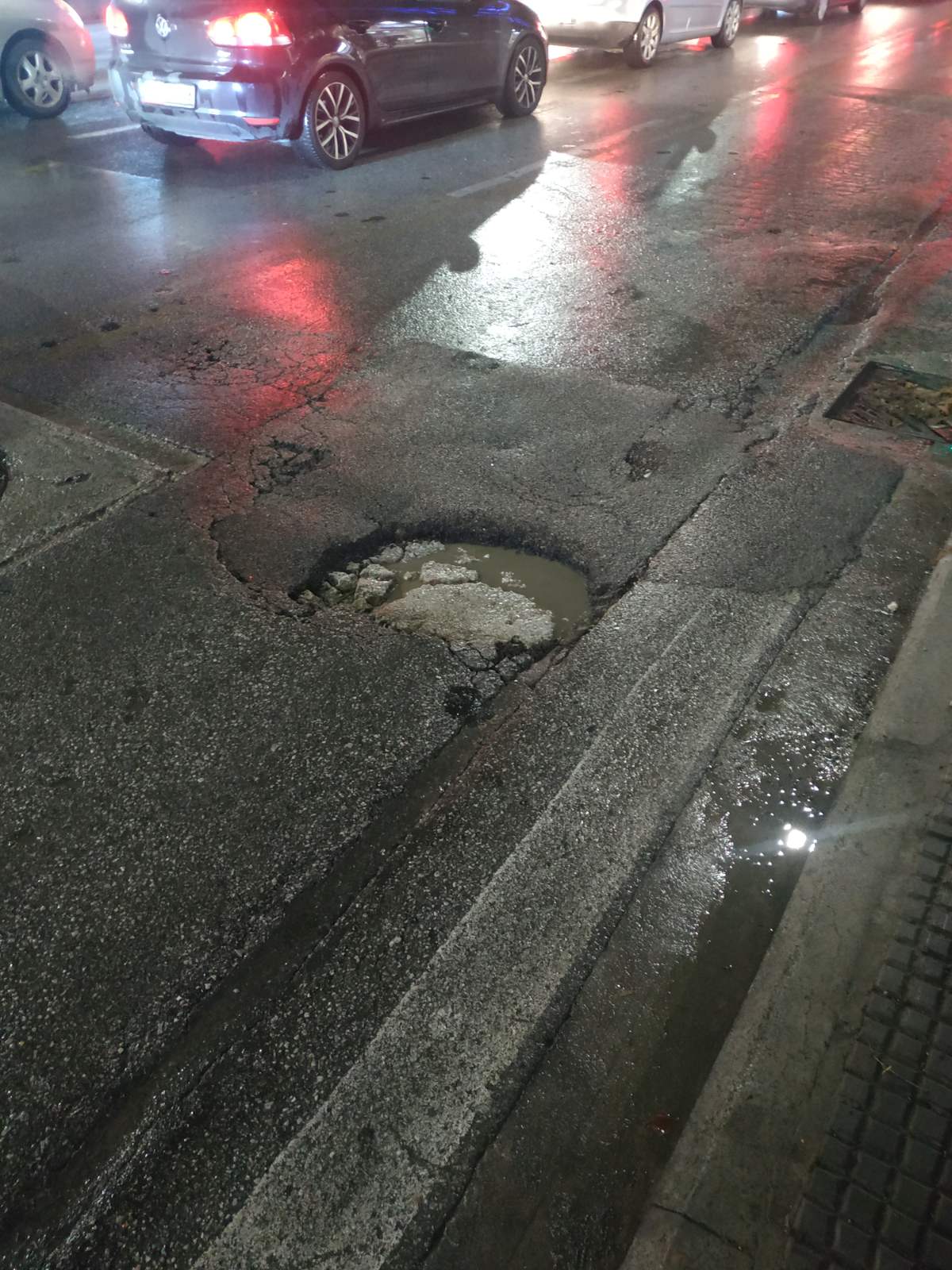 Στην οδό Εγνατία 55, στο ρεύμα προς Σταθμό, υπάρχει λακκούβα στο οδόστρωμα.