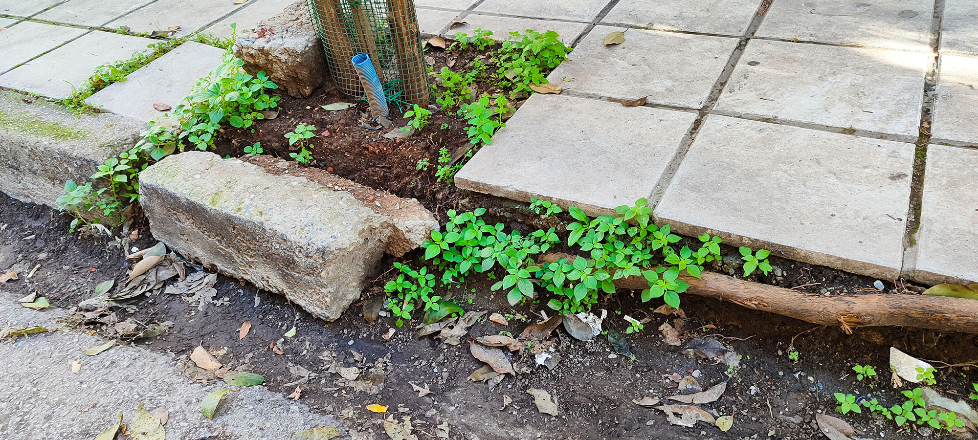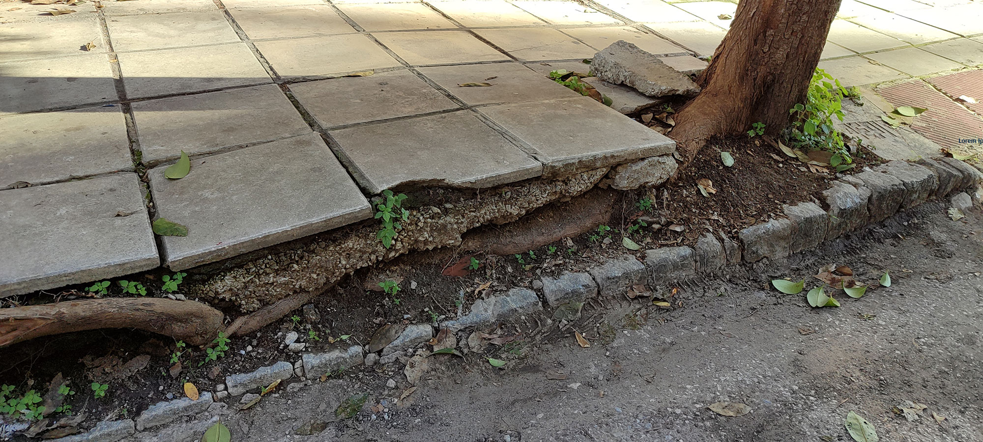 Καταστροφή πλακών πεζοδρομίου εξαιτίας της ρίζας του δέντρου που υπάρχει στην οδό Μελενίκου 41, Ντεπώ (περ. Βούλγαρη). Έχει φουσκώσει το πεζοδρόμιο και τινάζει τις πλάκες και το περβάζι του πεζοδρομία με αποτέλεσμα να γίνεται ιδιαίτερα επικίνδυνο για τους πεζούς αλλά και τα αυτοκίνητα