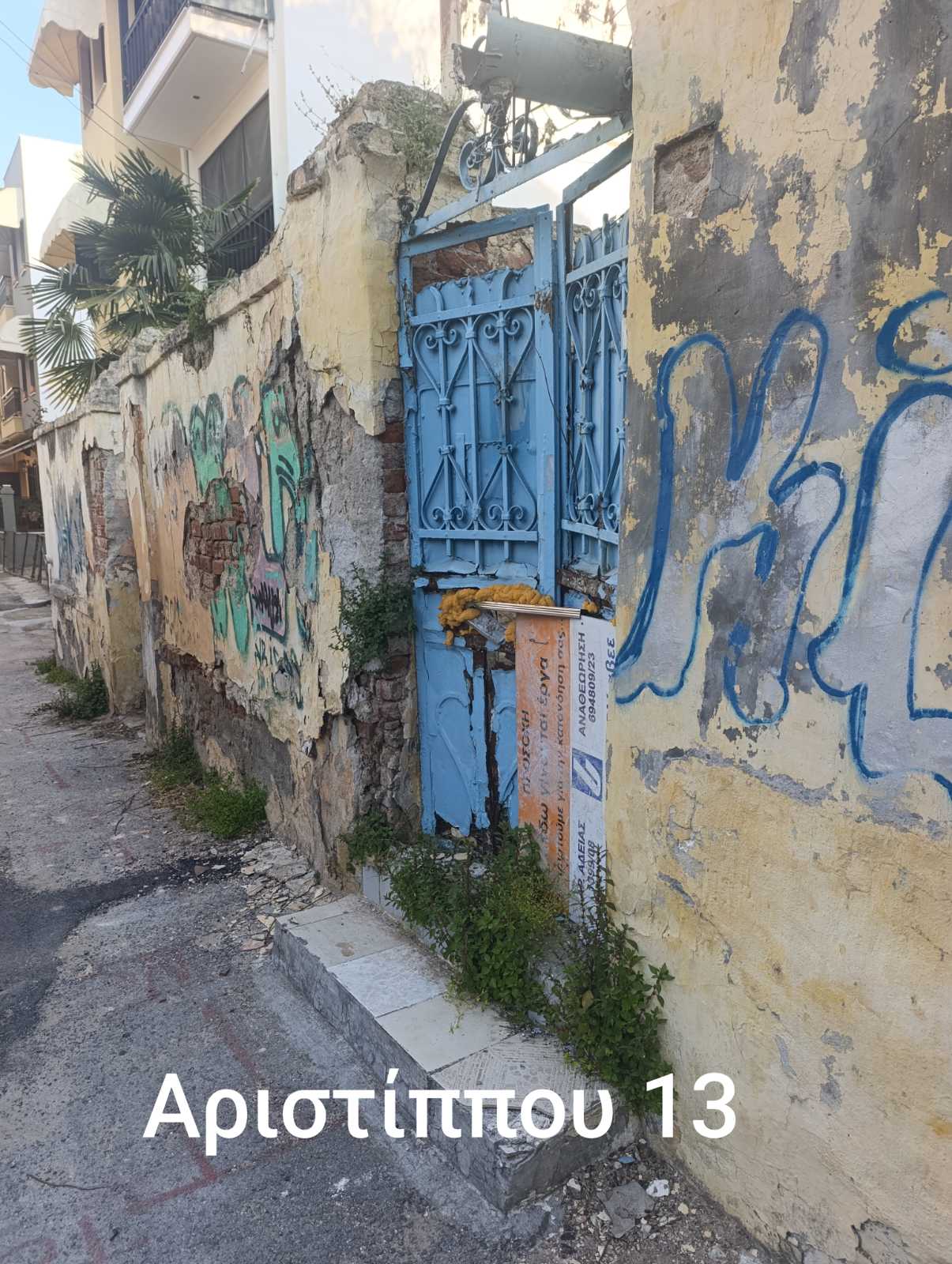 ΥΠΑΡΧΕΙ ΕΝΑ ΕΓΚΑΤΑΛΕΛΕΙΜΜΕΝΟ ΚΤΙΡΙΟ, ΟΠΟΥ ΠΕΣΤΟΥΝ ΣΟΒΑΔΕΣ ΣΤΟ ΔΡΟΜΟ, ΕΙΝΑΙ ΕΤΟΙΜΟΡΡΟΠΟ ΚΑΙ ΕΠΙΚΙΝΔΥΝΟ. ΠΑΡΑΚΑΛΩ ΝΑ ΓΙΝΕΙ ΑΜΕΣΑ ΕΛΕΓΧΟΣ.