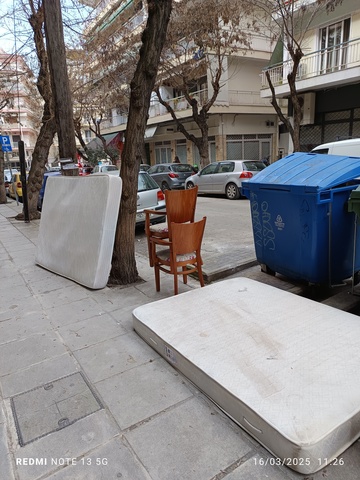 στην Καρακαση 21 μπροστά στον παιδικό σταθμό Φωκα εχουν παρατησει στρωμα και κρεβατι και Στρωμνίτσης 1 εχουν πάει στην μπροστα στην εισοδο της ντουλάπα υποθετει ο κυριος οτι είναι σετ