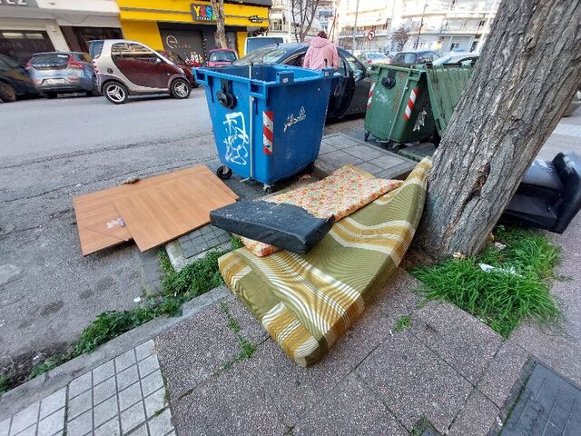 Στρωμα πισω απο τον πρασινο καδο που βρισκεται επι της οδου Βουλγαρη 23.