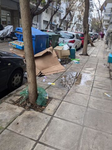 Έχουν αφήσει έπιπλα και σκουπίδια έξω από τους κάδους
