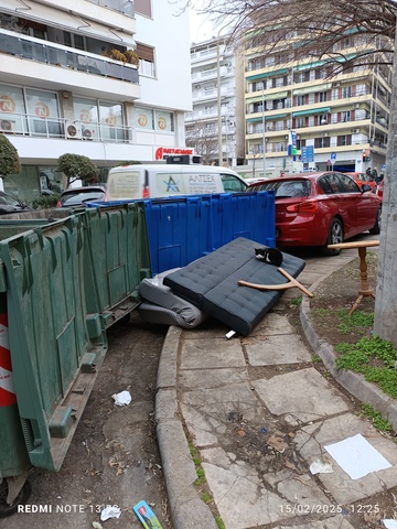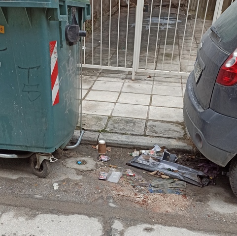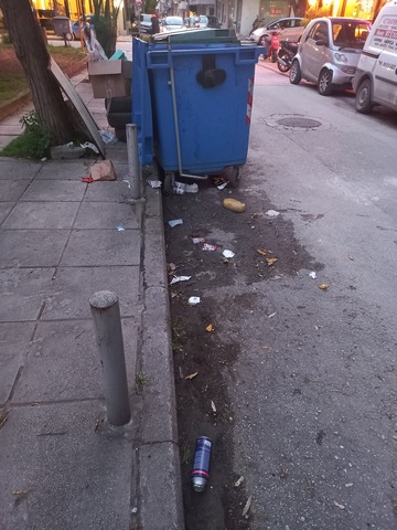 Σας στέλνω φωτογραφίες των κάδων, αλλά και του δρόμου καθώς και όλου του περιβάλλοντα χώρου, μετά την περισυλλογή σκουπιδιών από τον υπαλλήλους του Δήμου. Τα σκουπίδια ειναι σκορπισμένα παντού στον δρόμο και στο πάρκο που βρίσκεται εκεί και στον δρόμο έχουν χυθεί υγρά από...