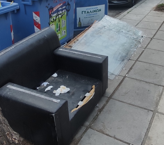 Παυσιλύπου 30 Άνω Τούμπα δίπλα από το πάρκο ΑΜΕΑ παρατημένα μπάζα εδώ και μέρες με τζάμια.