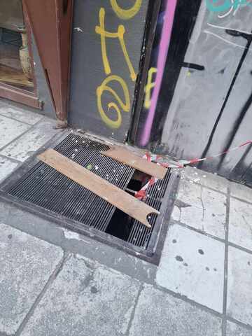 Σπασμενη σχάρα στο πεζοδρομιο επί της οδου Ιπποδρομιου 10. Παρακαλώ για την επισκευή της καθώς είναι πολύ επικίνδυνη για την ασφάλειά μας