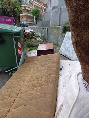 Επισυναπτόμενες θα βρείτε φωτογραφίες από ογκώδη αντικείμενα και σκουπίδια που κλείνουν το πεζοδρόμιο εδώ και 1 μήνα. Παράκληση για την συγκομιδή τους καθώς καθιστούν την διέλευση ΑΔΥΝΑΤΗ σε άτομα με αμαξίδια και μητέρες με καρότσια.