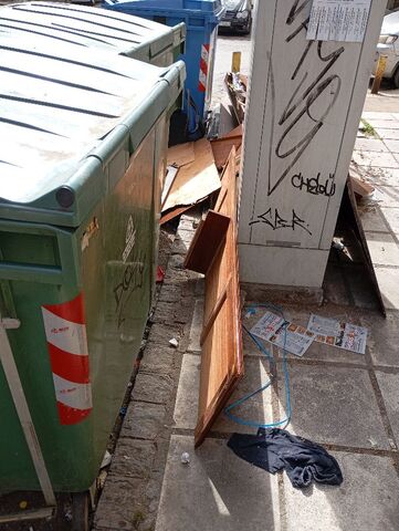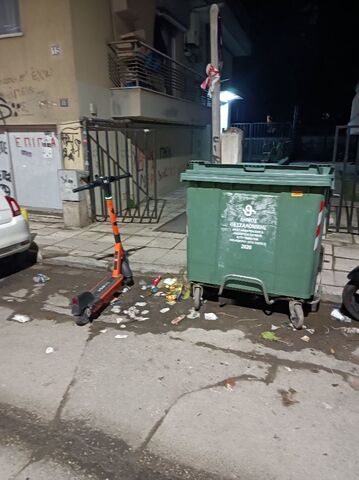 Διάσπαρτα σκουπίδια λόγο του ότι τα Σαββατοκύριακα οι κάδοι ξεχειλίζουν. Οι κάδοι σε μια τέτοια πυκνοκατοικημένη περιοχή είναι λίγοι.