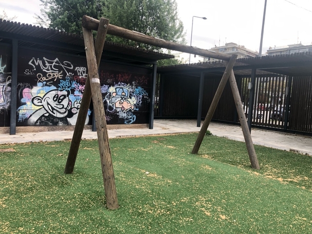 Δεν υπάρχουν κούνιες στο χώρο της παιδική χαρά και δεν υπάρχει φωτισμός στο χώρο της παιδικής χαρά το βράδυ.