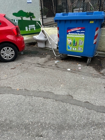 Κλείτου με Σόλωνος γωνία δίπλα στο container της ανακύκλωσης συσκευασιών τουαλέτα
