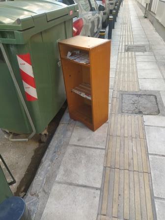 2η γνωστοποίηση - Επί της οδού ΚΛΕΙΤΟΥ 8 υπάρχουν πεταμένα Χριστουγεννιάτικο δένδρο και καρέκλα γραφείου.