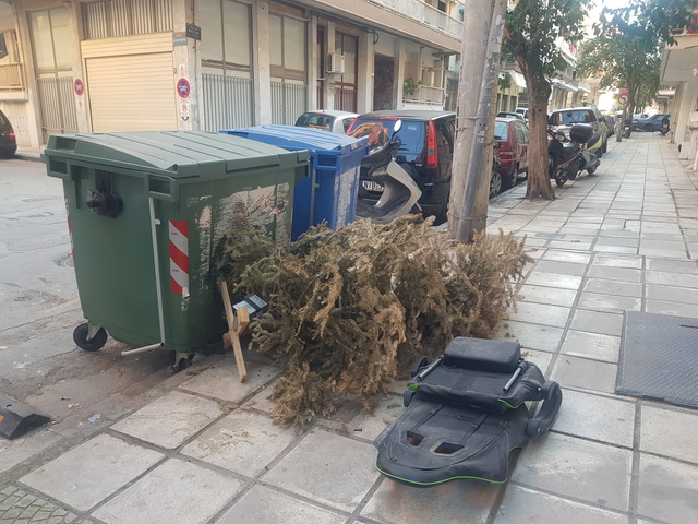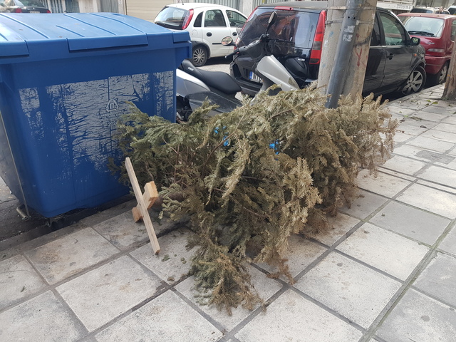 Επί της οδού ΚΛΕΙΤΟΥ 8 υπάρχει πεταμένο Χριστουγεννιάτικο δέντρο.
