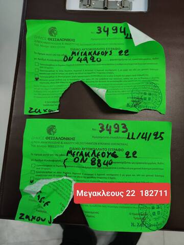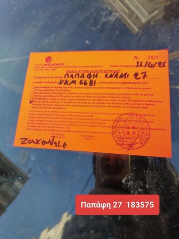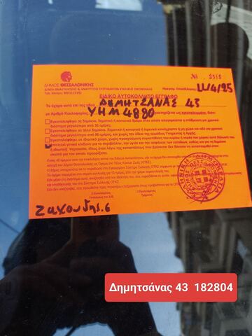 Σχετικά με το αίτημα #180785 θα ήθελα να επισημάνω ότι μάλλον κάτι δεν δουλεύει ορθώς.Στο συγκεκριμένο όχημα τοποθετήθηκε κανονικά αυτοκολλητο χρώματος πορτοκαλι και μετά απο 2 ημέρες, με τις βροχές, το όχημα μετακινήθηκε απλώς 3 μέτρα πίσω (Κωνσταντινουπόλεως 87) και...