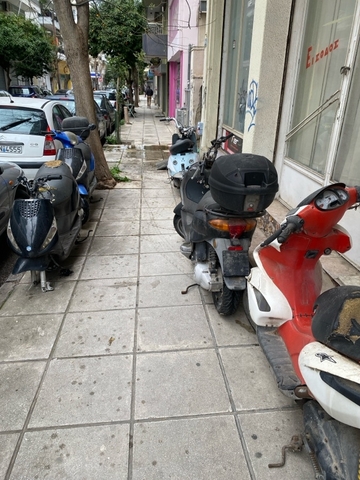Σκούτερ πάνω στο πεζοδρόμιο. Το έχω δηλώσει από 28/9/2024 βάλατε αυτοκόλλητο αλλά ακόμα είναι στο σημείο. Εστία μόλυνσης