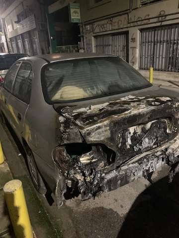 Στην οδο Αμαλιας 15 υπαρχει εδω και μηνες ενα μισοκαμμενο αυτοκινητο