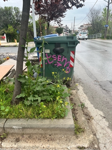 Γύρω από τον κάδο υπάρχουν πολλά σκουπίδια τα οποία αποτελούν εστία μόλυνσης. Λόγω αυτού ο κάδος δεν είναι τοποθετημένος στη θέση του αλλά βγαίνει προς το δρόμο με αποτέλεσμα να κινδυνεύουν αυτοί που πεταν τα σκουπίδια και να αποτελεί κίνδυνο και για τα διερχόμενα...