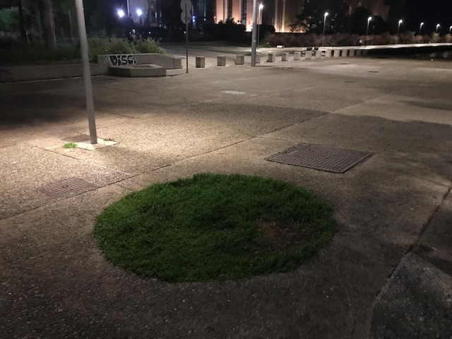 Εικόνες από το πεζοδρόμιο περιμετρικά του 10 νηπιαγωγείου Θεσσαλονίκης. Χόρτα που χρειάζονται κούρεμα.