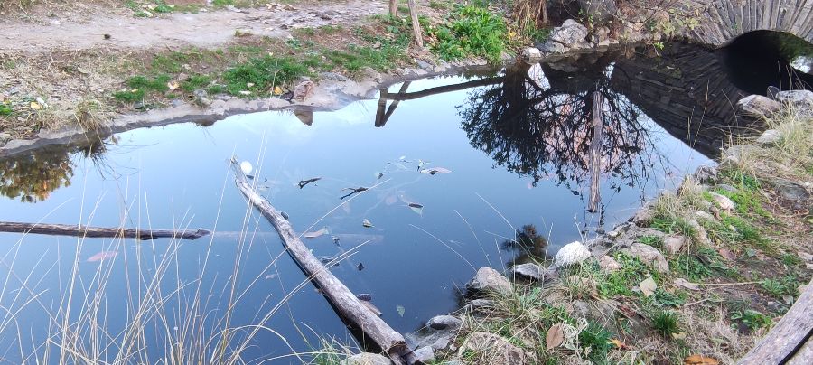 Το ρυάκι στο οποίο υπάρχουν πολλά ζώα (ιχθύες και χελώνες ως επί το πλείστον) είναι γεμάτο ακαθαρσίες.