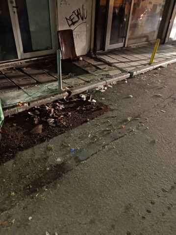 Υπάρχουν ογκώδη πεταμένα στο πεζοδρόμιο πίσω από τους κάδους