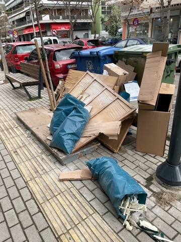 Κάποια από τα ογκώδη βρίσκονται πάνω από δέκα μέρες και φαίνεται κανείς δεν ειδοποίησε τον δήμο όποτε μαζεύτηκαν και νέα σκουπίδια Προσπαθούμε να βοηθήσουμε τον δήμο στο να βελτιωθεί η εικόνα της πόλης μας